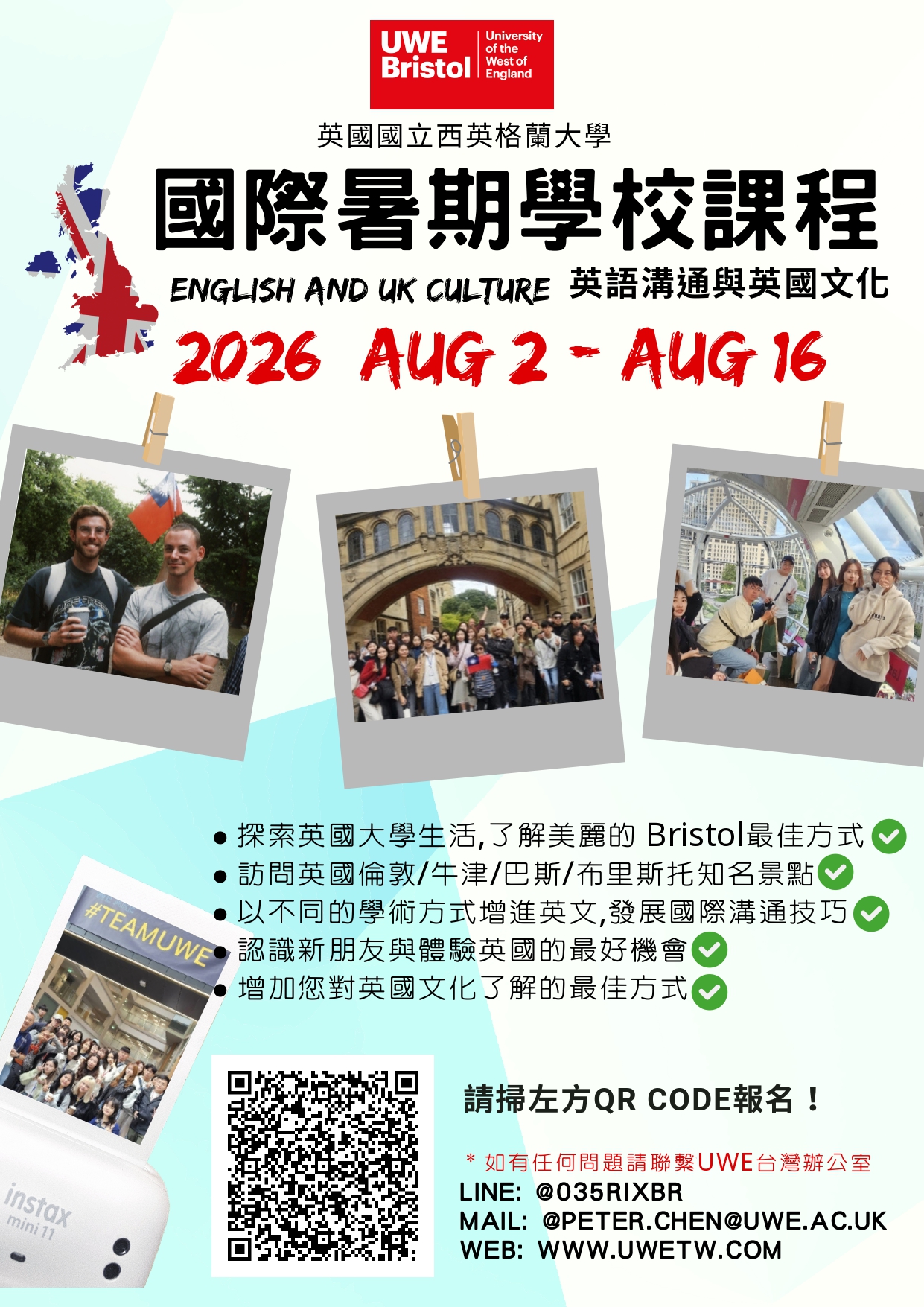 【活動公告】UWE Bristol「2026 國際暑期學校-英語溝通與英國文化」現正報名中