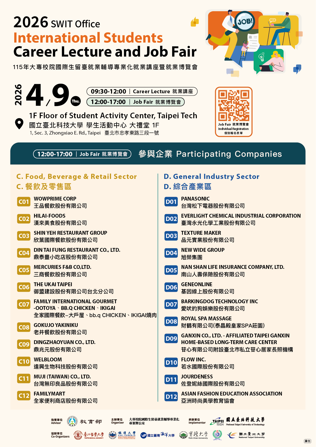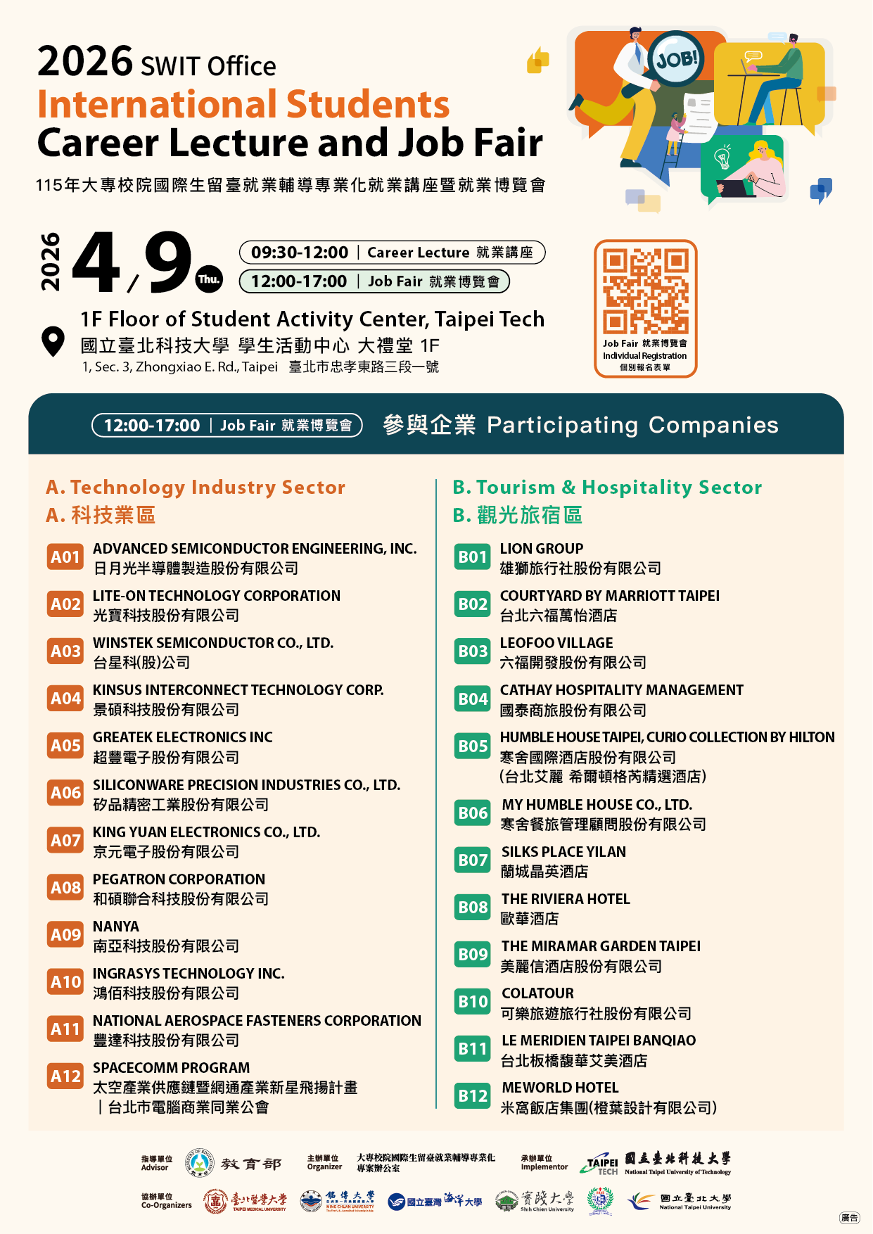 We are pleased to invite you to the 2026 International Students Career Lecture and Job Fair – Northern Taiwan.