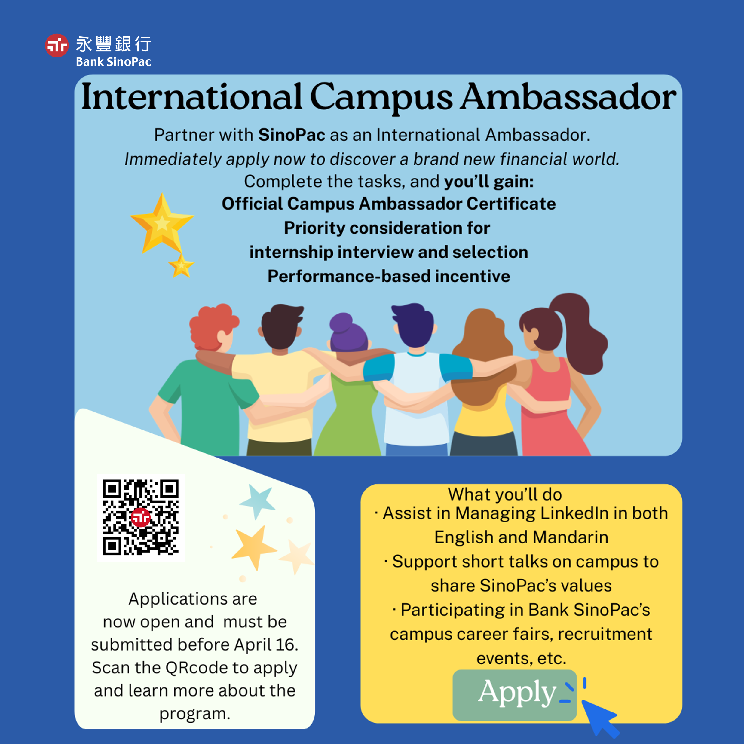 【徵才活動公告】永豐銀行 - 國際校園大使招聘通知!
