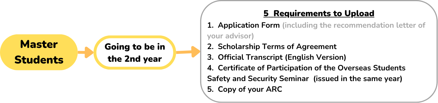 The scholarships below are not handled through the NTUT renewal system. Please follow the instructions from MOFA/MOE or OIA when necessary.