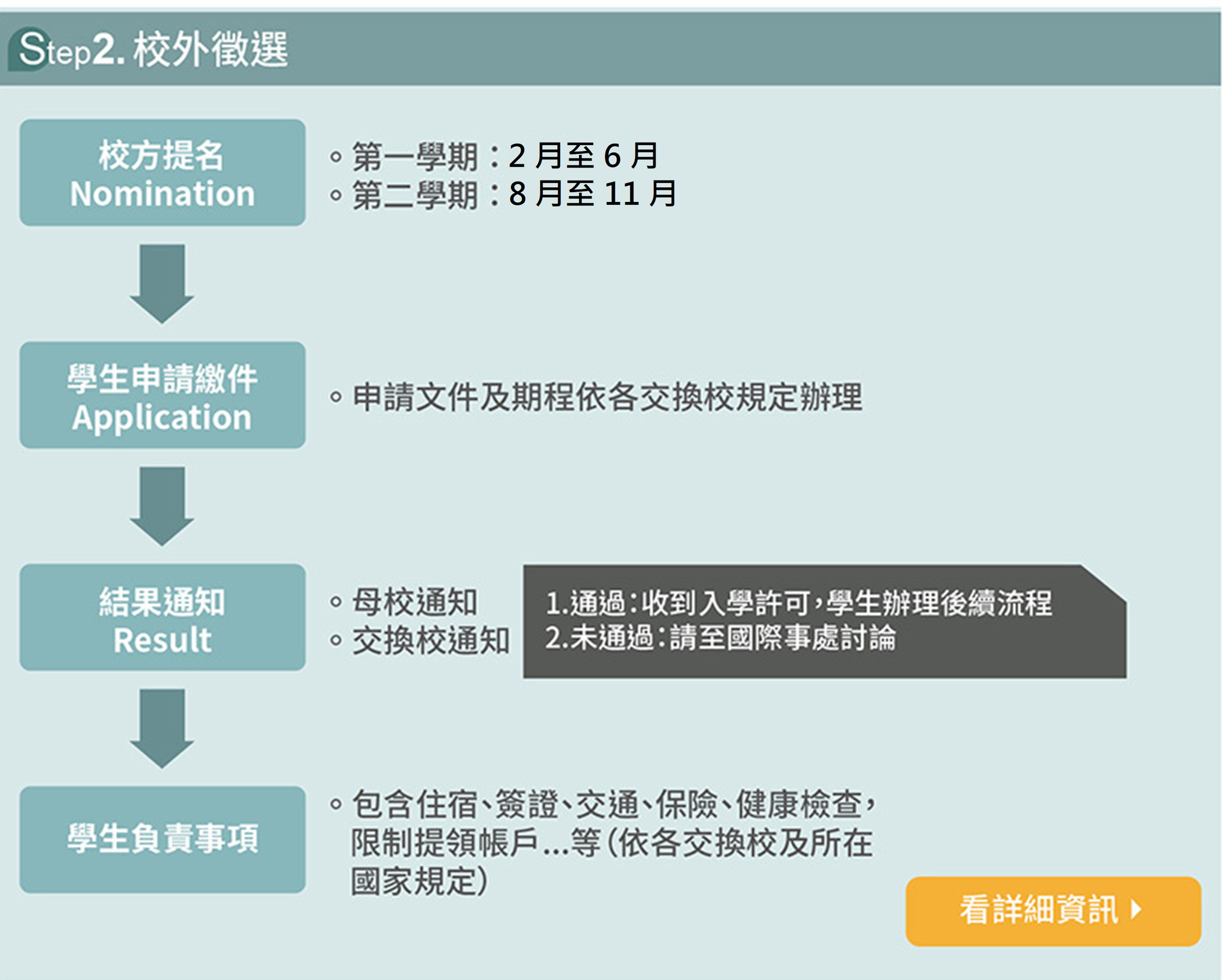 115學年度上/下學期交換學生申請期間(2025/12/01-12/10)。